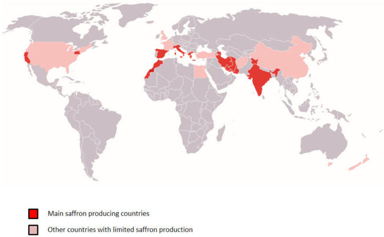Currently the main world producers of saffron are India, Spain, Morocco, Greece, and Iran
